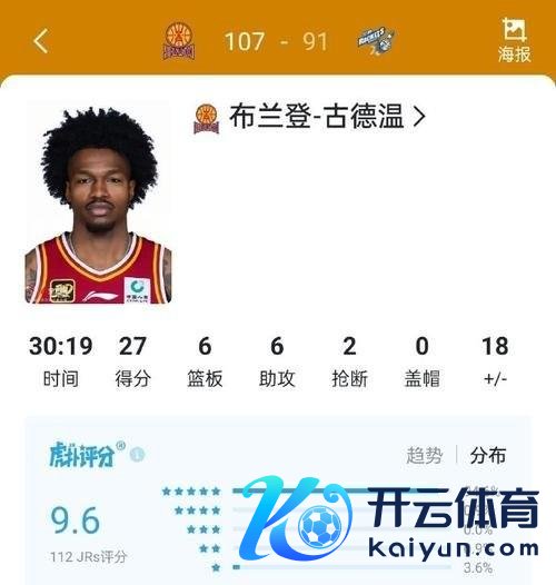 古德温全场砍下22分、8个篮板、13次助攻,可以说是个万能战士。
