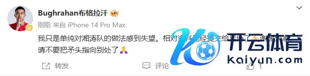 之后布格拉汗将原微博删除,并进行了澄澈:“我仅仅单纯对湘涛队的作念法感到失望,联系贵府还是提交给足协了。谢谢众人,请不要把锋芒指向别处了🙏 ”