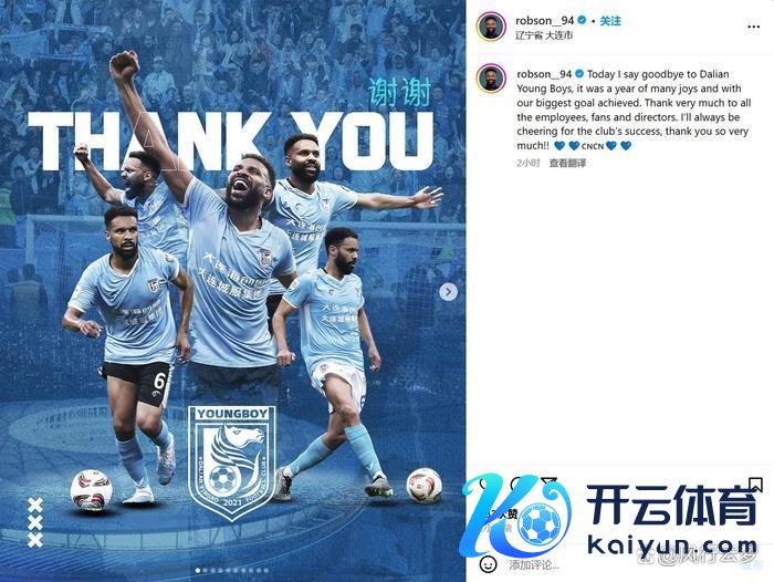 罗伯森通过酬酢媒体晒出了我方在球队的海报,并深情地写说念:“今天,我向大连英博队告别。这一年来,咱们共同阅历了好多高兴时光,而况收场了最大的盘算——得胜冲超。在此,我要向统统职工、球迷以及贬责层抒发最深的感谢。改日,无论身在那里,我齐会一直为大连英博的得胜而原意。十分感谢全球!!💙💙🇨🇳🇨🇳💙💙”