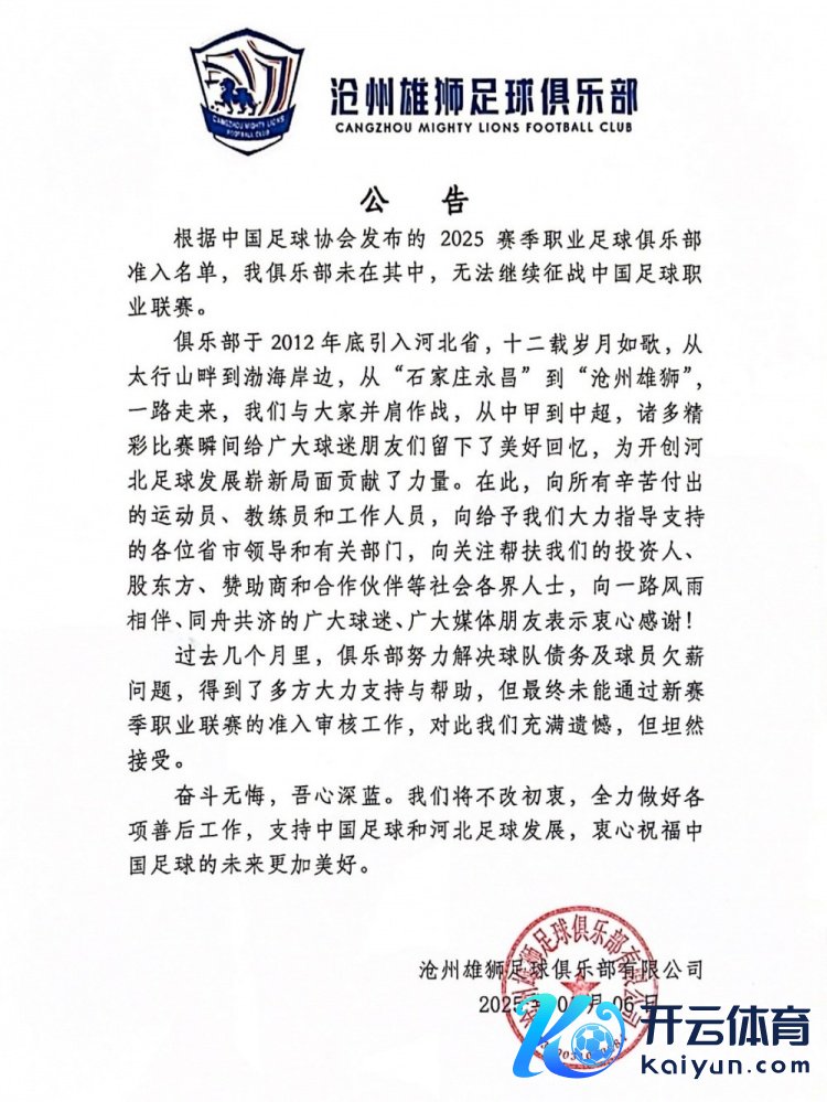 沧州雄狮、湖南湘涛两家俱乐部通知罢了体育录像/图片