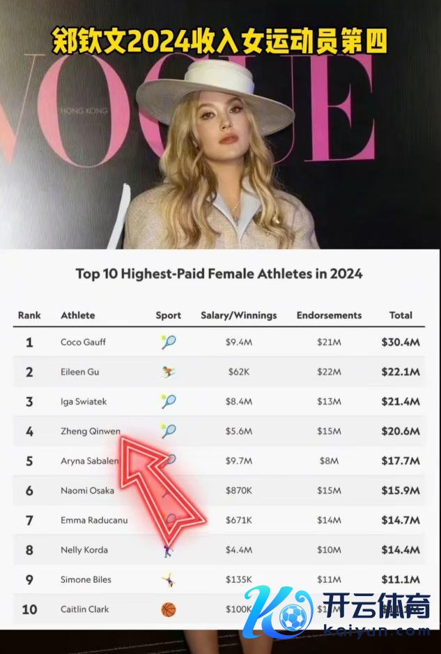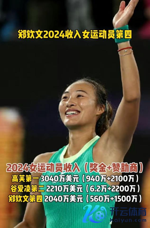 凭据官方榜单统计,郑钦文在2024女通顺员收入排名榜位列第四,总收入约2060万好意思元,比位列第二的谷爱凌少了150万。