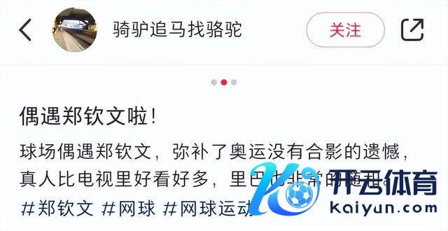 郑钦文又出头了!走时能和她合影的网友老牛破车公布同框照,陈赞郑钦文超越亲和体育赛事直播,坦言能和她近距离相处着实没思过,终于圆了奥运错失同框的梦思。